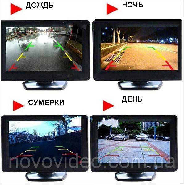 Під час використання монітора з камерою заднього огляду, у якій, зазвичай, є розмітка, то залежно від погодних умов і пори року та доби, можна побачити такі варіанти огляду.